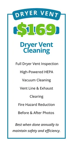Dryer vent cleaning is not included but can be added for only $99 as a bonus offer with any package, or for the price of $169 as a standalone service.
